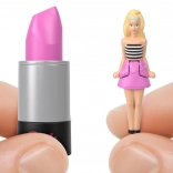 Jedinečný otáčací mechanizmus na spodku rúžu odhalí figúrku behom chvíľky. Bábiky sa ohýbajú v páse a ľahko sa vystavujú na stojančeku. V kolekcii nájdete rôzne štýly a postavy – od športových po večerné – pre ešte väčšiu porciu zábavy a kombinovanie so setmi MINI BARBIE LAND (predávajú sa samostatne).
