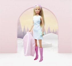 Objavte nadčasový štýl bábiky STEFFI LOVE s viac než 30-ročnou tradíciou. Táto módna ikona miluje elegantné outfity a moderné účesy. V edícii Cape Fashion žiari v mäkkej, plyšovej peleríne, jemne modrých šatách s pepito vzorom a zladených ružových doplnkoch – čelenke, čižmách a malom psaníčku.