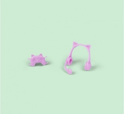 Súčasťou sú výrazné slúchadlá s uškami a malý herný ovládač – ideálne rekvizity na herné príbehy a digitálne dobrodružstvá.