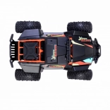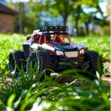 - Výrazné svetlomety umožňujú realistické pretekanie vo vysokých rýchlostiach – diaľkovo ovládané terénne vozidlo ponúka plnohodnotné jazdné funkcie pri rýchlosti až 15 km/h. Má možnosť turba a vďaka svetlám na streche bude viditeľné aj v tme.