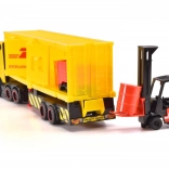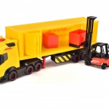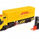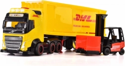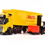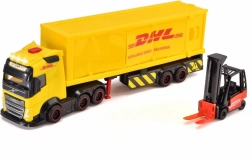 Kamión Volvo s licenciou kuriérskej spoločnosti DHL. Svetelné a zvukové funkcie, otváracie a pohyblivé časti. Súčasťou je vysokozdvižný vozík a nakladacie boxy. Dĺžka 35 cm.