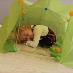 Guľôčkové spojky umožňujú napojenie tyčiek v rôznych smeroch. Konštrukcia je pevná a variabilná – od kupol cez tunely až po fantastické bunkre.
