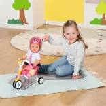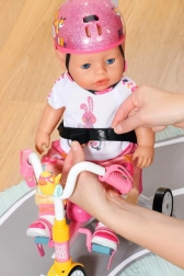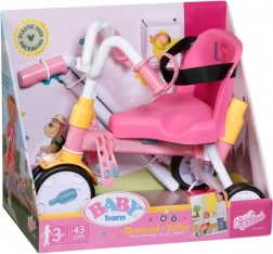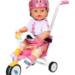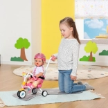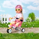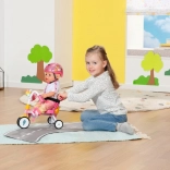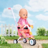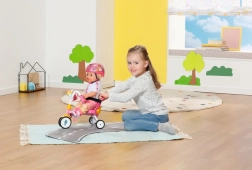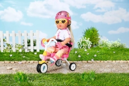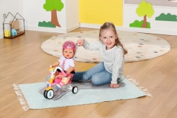 Táto ružová trojkolka je navrhnutá pre realistickú hru s bábikami BABY BORN. Dieťa môže bábiku tlačiť pomocou 45 cm dlhej vodiacej tyče alebo ju nechať „šliapať“ vďaka pútkam na pedáloch. Pevná konštrukcia a stabilný trojkolesový podvozok podporujú istú jazdu doma aj vonku.