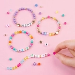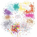 Sada zahŕňa písmená, okrúhle korálky a hviezdne tvary, všetky v rade živých farieb na personalizované šperky.