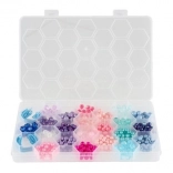 Plastová krabička s šesťhranným dizajnom veka uľahčuje ukladanie a organizáciu korálok podľa farieb.