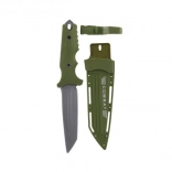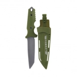 Detailné spracovanie noža so zelenou rukoväťou a sivou čepeľou vytvára autentický vzhľad pre hranie na vojakov.