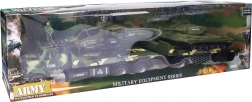 - Kompletný akčný set: ťahač, vrtuľník, tank, vojak a doplnky