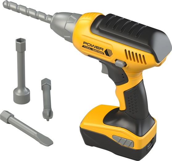 Súprava vŕtačky. Rozmery 17,5x6x21,5 cm. Svetelné efekty. 3x AAA batérie nie sú súčasťou balenia. Prepínač ON/OFF na vŕtačke. Súčasťou je 1 vrták, 2 skrutkovače, 1 kľúč.