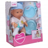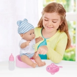 Realistické bábätko na hru na rodičov s veľkosťou 30 cm vie po napití z fľaštičky čurať a vydáva až 10 rôznych zvukov. Súčasťou je nočník, fľaštička, tanierik a lyžička. Batérie 3× AG13 sú súčasťou balenia.