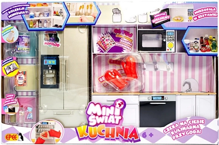 Kuchynská sada MiniWorld okrem vybavenia obsahuje aj miniatúrne doplnky, ktoré vaše dieťa prenesú do skutočného sveta kuchyne v miniatúrnom prevedení. Hra s MiniWorldom rozvíja ich predstavivosť, zručnosť a umožňuje im sústrediť sa na vytváranie vlastného sveta.