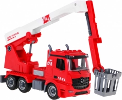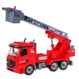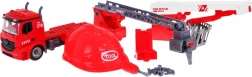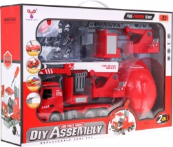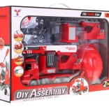 Set zahŕňa hasičské auto 2v1, ktoré si deti môžu samy zostaviť za pomoci dodaných nástrojov a dielov. Auto je vybavené vymeniteľným, roztiahnuteľným a otáčajúcim sa zdvihákom s košom alebo striekačkou vodnej pištole, ktorá skutočne funguje. Toto vozidlo je poháňané 3 batériami typu LR44, ktoré sú súčasťou balenia. Vydáva autentické zvukové a svetelné efekty, ako je zvuk sirény, klaksón alebo štartovanie motora. K setu patrí tiež prilba, vďaka ktorej sa deti môžu cítiť ako skutoční hasiči.