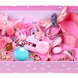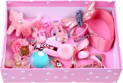 Štýlová ružová krabička ozdobená bielymi srdciami na uloženie všetkých doplnkov na jednom mieste.