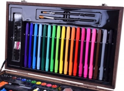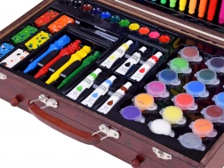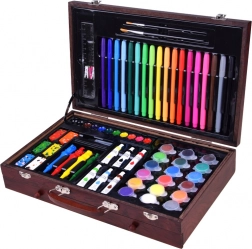 Táto umelecká sada obsahuje 123 starostlivo usporiadaných komponentov v elegantnom drevenom kufríku. Ideálna pre malých umelcov, ktorí chcú rozvíjať svoje zručnosti v rôznych výtvarných technikách.