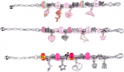 Súprava obsahuje všetko potrebné na tvorbu krásnych náramkov a náhrdelníkov: rôzne korálky, prívesky a šnúrky.