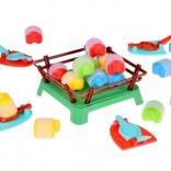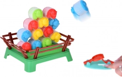 V balení nájdete 16 ovečiek, 4 odpaľovače a ohradu – všetko, čo potrebujete k okamžitej hre. Jednoduché zostavenie a odolné materiály.