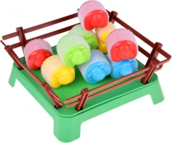 - 16 farebných ovečiek, 4 odpaľovače, plastová ohrada, návod (EN)