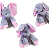 Tento plyšový slon je ideálnou hračkou pre deti, ktoré milujú hudbu a interaktívnu zábavu. Po stlačení pravej labky zaznie „Do Your Ears Hang Low“, slon spieva a hýbe uškami. Ľavá labka spustí „Peek‑A‑Boo, where are you?!“ a sloník vyzýva na hru na skrývačku.