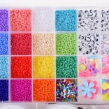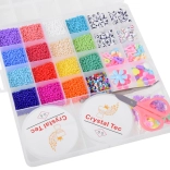 Tento univerzálny DIY set obsahuje širokú paletu farebných korálikov a doplnkov v priehľadnom organizéri s priehradkami. Deti si môžu navrhovať a skladať originálne šperky pre seba aj svojich blízkych – od náramkov s písmenami po hravé náhrdelníky so srdiečkami a kvietkami. Organizér pomáha udržať všetko prehľadné a práca je tak čistá a zábavná.