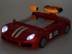 - Autíčko sa štartuje tlačidlom, rozsvietenie svetiel a zvuky motora.
