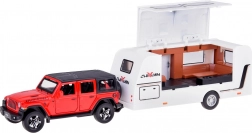 Terénne auto s karavanom so svetlami a zvukmi 1:32 – červené