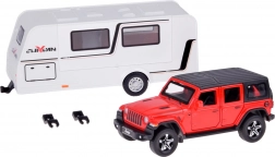 Vyrazte na dobrodružnú dovolenku! Tento detailný set zahŕňa robustné terénne auto v mierke 1:32 a funkčný karavan. Auto ponúka svetelné efekty, zvuky motora a jazdy, otváracie dvere a kufor a pohon na spätné natiahnutie (pull-back). Karavan má otváraciu bočnicu a vybavený interiér pre ešte realistickejšiu hru.