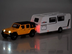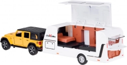 Set terénneho auta s karavanom prináša deťom realistickú hru na cestovanie a kempovanie. Kovovo-plastové prevedenie zabezpečuje odolnosť a dlhú životnosť, zatiaľ čo svetlá a zvuky umocňujú zážitok z jazdy. Vďaka pull-back pohonu stačí autíčko natiahnuť dozadu a pustiť – samo vyrazí vpred.