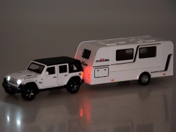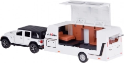 Set terénneho auta s karavanom prináša deťom realistickú hru na cestovanie a kempovanie. Kovovo-plastové prevedenie zabezpečuje odolnosť a dlhú životnosť, zatiaľ čo svetlá a zvuky umocňujú zážitok z jazdy. Vďaka pull-back pohonu stačí autíčko natiahnuť dozadu a pustiť – samo vyrazí vpred.
