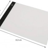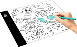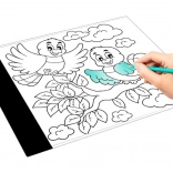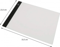 Ako funguje: Stačí umiestniť kresbu, ktorú chcete prekresliť, na dosku a položiť na ňu čistý papier. Potom zapnite príslušné osvetlenie a môžete začať kresliť.