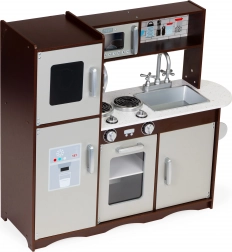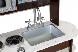 Ako v ozajstnej kuchyni majú deti možnosť piecť, variť a ohrievať jedlo v mikrovlnke a potom všetky nádoby umyť v priestrannom dreze a uložiť na miesto.