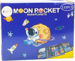 Umelecká sada v rozkladacom kufríku.Umelecká sada v rozkladacom kufríku zdobená motívom vesmíru. Je to ideálny darček pre každého malého umelca, ktorý ho prenesie do sveta fantázie a tvorivosti!