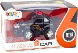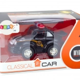 Toto elegantné čierne policajné auto v mierke 1:38 ocení každý nadšenec automobilových klasík. Je vybavené setrvačníkovým pohonom, ktorý umožňuje rýchly pohyb vpred po jeho natiahnutí dozadu.