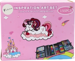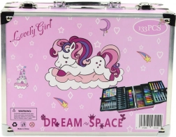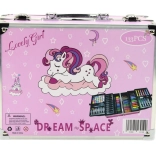 Umelecká sada v rozkladacom kufríku.Umelecká sada v rozkladacom kufríku zdobená krásnym motívom jednorožca. Je to ideálny darček pre každého malého umelca, ktorý ho prenesie do sveta fantázie a tvorivosti!