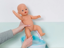 Ponorte sa do sveta Baby Born s bábikou Emmou, ktorá prichádza v svojom očarujúcom novom oblečku a ponúka desať realistických funkcií. Tento set obsahuje aj desať zábavných doplnkov, ako je magický tanier, lyžička, cumlík, fľaša, plienka a nočník s vodnou funkciou. Emma dokáže piť, plakať pravé slzičky, spať, kúpať sa a plniť svoju plienočku. Oči sa jej otvárajú a zatvárajú pomocou otočného cumlíka. Nepotrebuje batérie a je vhodná pre deti od 3 rokov.