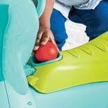 Sloní chobot zábavne zbiera farebné loptičky a vyhadzuje ich do košíka alebo na podlahu, takže sa dieťa učí príčinu a následok aj koordináciu. Loptičky odložíte do úložného priestoru pod sedadlom; rýchlosť kolies možno ľahko nastaviť pre stabilnejšiu jazdu.