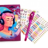 Magický svetelný hudobný diár obsahuje 40 linajkovaných strán. Má tvrdé dosky zdobené LED svetlami a má zatváranie na visiaci zámok. Súčasťou sú 2 listy samolepiek a pero s dvoma hrotmi. Jeden obsahuje bežný atrament, druhý neviditeľný atrament, ktorý je viditeľný iba pomocou špeciálnej "baterky" z pera.