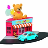 - Plastová budova hračkárstva, kovový model auta 1:43, pouličné a chodníkové prvky, doplnky
