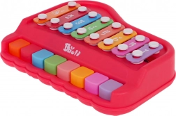 Hudobné pianínko a xylofón 2v1 pre najmenších od 18 mesiacov podporuje rozvoj rytmu aj motoriky. Je vyrobené z kvalitného plastu a kovu, má žiarivé farby a súčasťou sú 2 paličky na jednoduché hranie a objavovanie zvukov.