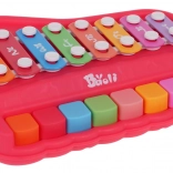 Táto zábavná hračka spája pianínko a xylofón do jedného kompaktného setu, ktorý deti motivuje k prvému hraniu na hudobné nástroje. Odolné vyhotovenie z plastu a kovu zaručuje dlhú životnosť a bezpečné používanie.