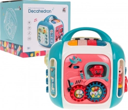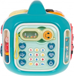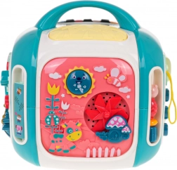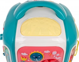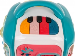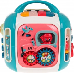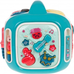 Interaktívna kocka je navrhnutá pre zábavu aj učenie. Deti objavujú farby, tvary, názvy zvierat a dopravných prostriedkov, trénujú pršteky na otočných prvkoch a objavujú rôzne melódie či zvuky. Horný panel s pianinkom ponúka 3 režimy a citlivé klávesy pre jednoduché hranie.