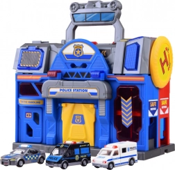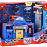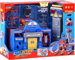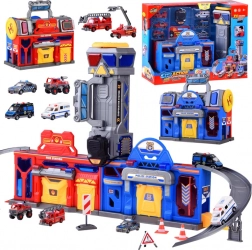 Veľká Edukativná Hračka spájajúca policajnú a hasičskú stanicu, ktorá poskytuje hodiny kreatívnej zábavy. Obsahuje výťah, rampy a alarmy pre realistické scenáre.