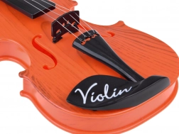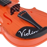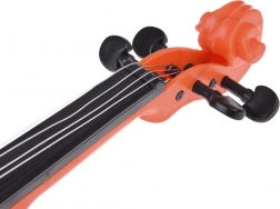 Oranžové telo s čiernym hmatníkom a strunníkom vyzerá ako skutočné husle – motivuje deti k hre a učeniu.