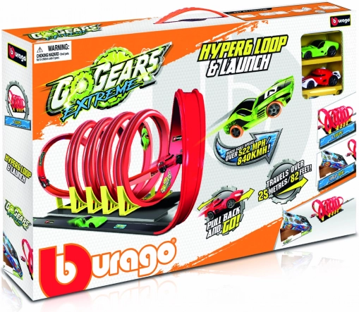 Autodráha Bburago GoGears Extreme: 6 slučiek, rampa, 2 rýchle autíčka a dojazd až 25 m. Súčasťou terč s bodovaním. Akčná pretekárska zábava pre deti.
