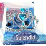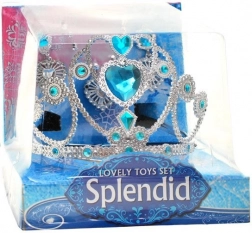 Korunka striebornej farby je zdobená modrými kameňmi, ktoré pridávajú elegantný vzhľad inšpirovaný Elsininým kúzelným svetom.