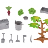 Set zahŕňa plastové figúrky zvierat ako sú psy, kone, prasiatka, ovce a kravy, ktoré sú vyrobené s dôrazom na detaily. Nechýbajú ani postavy farmára a gazdinej, ktoré obohacujú hru o každodenné farmárske povinnosti. Súčasťou setu je tiež traktor s prívesom, záhradné náradie a dekoratívne samolepky pre vlastnú personalizáciu farmy.