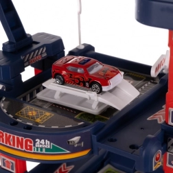 Štvorposchodové garáže KRUZZEL zaujmú moderným dizajnom, pevnou konštrukciou a premyslenými detailmi pre realistickú hru. Každé poschodie má zábradlie proti vypadnutiu autíčok, na streche je heliport a po celej trase nechýba dopravné značenie. Široké, ideálne tvarované rampy umožňujú plynulý zjazd od najvyššej úrovne až nadol.