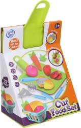 - Krájacie doska, košík, rozkrojiteľná mrkva, paradajka, zemiak, cibuľa, nôž, škrabka, napichovátko, naberačka