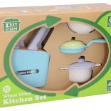 Sada kuchynského riadu z ekologických materiálov je ideálna pre malých kuchárov, ktorí chcú objavovať radosť z varenia a používať priateľské k životnému prostrediu nástroje.