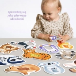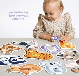 Prvé puzzle Mama a ja je vynikajúca vzdelávacia sada pre najmenších objaviteľov a skvelý nápad na prvé skladačky. Obsahuje 11 veľkých dvojdielnych puzzlí s otvorom. Hra spočíva v prispôsobovaní rôzne tvarovaných dielov do otvorov.