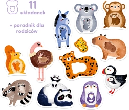 Zvieratká sú jednou z najobľúbenejších tém pre deti. Roztomilé ilustrácie inšpirujú k mnohým všestranne rozvíjajúcim hrám. Nápady na ne nájdete v sprievodcovi priloženom k sade, a tu sú niektoré možnosti:
