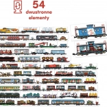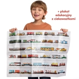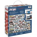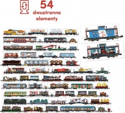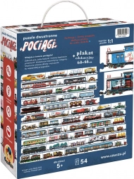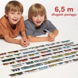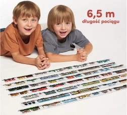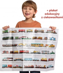Skladačka obsahuje 54 obojstranných dielikov a vzdelávací plagát so zaujímavosťami z oblasti techniky a histórie dopravy. Deti aj dospelí sa môžu ponoriť do sveta železníc a dozvedieť sa množstvo nového.